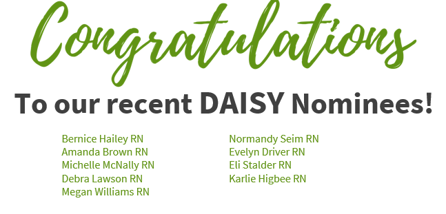 In addition to Megan, we are proud to recognize the other nominees that work both in the Hospital and Extended Care.
